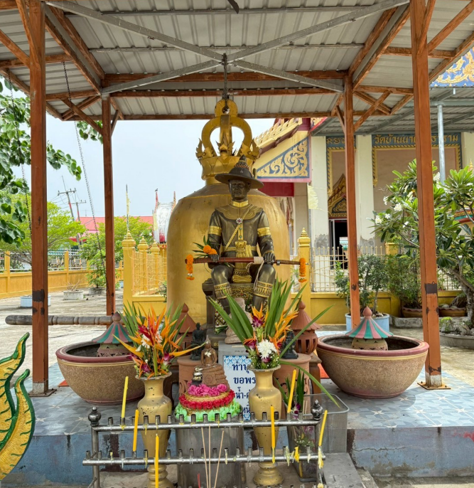 - องค์ที่ 3: ท้าวเวสสุวรรณ (ด้านขวา - สีม่วงทอง) ความสำคัญ: เช่นเดียวกับองค์ซ้าย แต่สีและรูปแบบต่างกันเพื่อแสดงถึงคุณลักษณะที่แตกต่างกันของท้าวเวสสุวรรณในแต่ละปาง บทบาทในวัดเสริมความสมดุลในการคุ้มครอง ซ้ายและขวาทั้งสองด้านหมายถึงการปกป้องรอบด้าน ผู้คนมักมากราบไหว้เพื่อขอพรเรื่องอำนาจ วาสนา ความสำเร็จ และขจัดอุปสรรค ศาลานี้เป็นสถานที่ศักดิ์สิทธิ์ที่ช่วยส่งเสริมความศรัทธาแก่ผู้มาวัด เป็นจุดรวมพลังศรัทธาและจิตวิญญาณของชาวบ้านที่มาไหว้ขอพร เพื่อให้เกิดความมั่นคง ปลอดภัย โชคลาภและความเจริญรุ่งเรืองแก่ชีวิตแลครอบครัว ตลอดจนเป็นเครื่องยึดเหนี่ยวจิตใจของชุมชนรอบวัดด้วย
