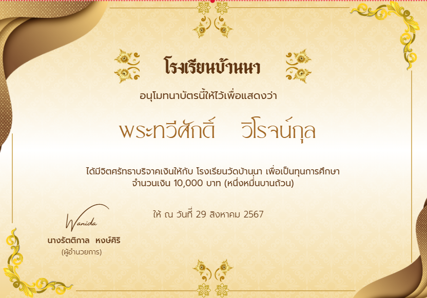 | ชื่อผลงาน : บริจาคเงินให้กับ โรงเรียนวัดบ้านนา เพื่อเป็นทุนการศึกษา | |
