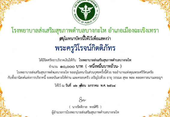 | ชื่อผลงาน : พระครูวิโรจน์กิติภัทร บริจาคเงินทุนการศึกษา | |
