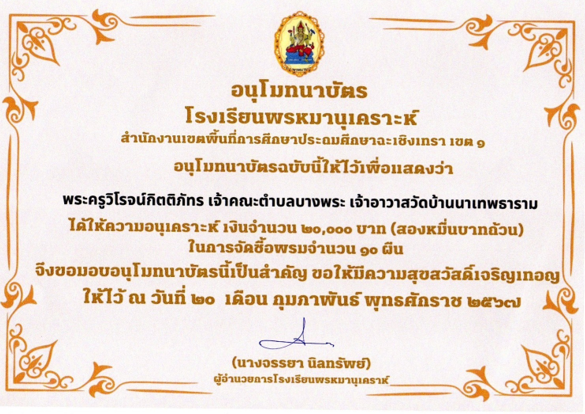 | ชื่อผลงาน : พระครูวิโรจน์กิตติภัทร บริจาคเงิน ในการจัดซื้อพรม โรงเรียนพรพมานุเคราะห์ | |