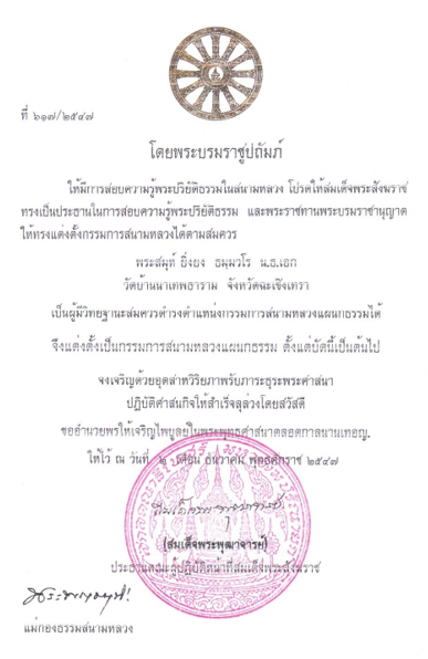 | ชื่อผลงาน : ได้แต่งตั้งเป็น กรรมการสนามหลวงแผนกธรรม | |