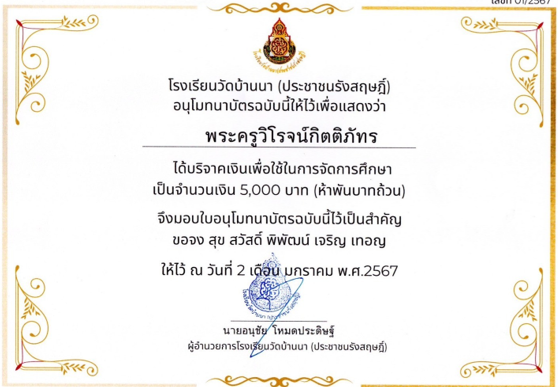 | ชื่อผลงาน : พระครูวิโรจน์กิตติภัทร บริจาคเงินสมทบทุนจัดซื้ออุปกรณ์ทางการแพทย์ | |