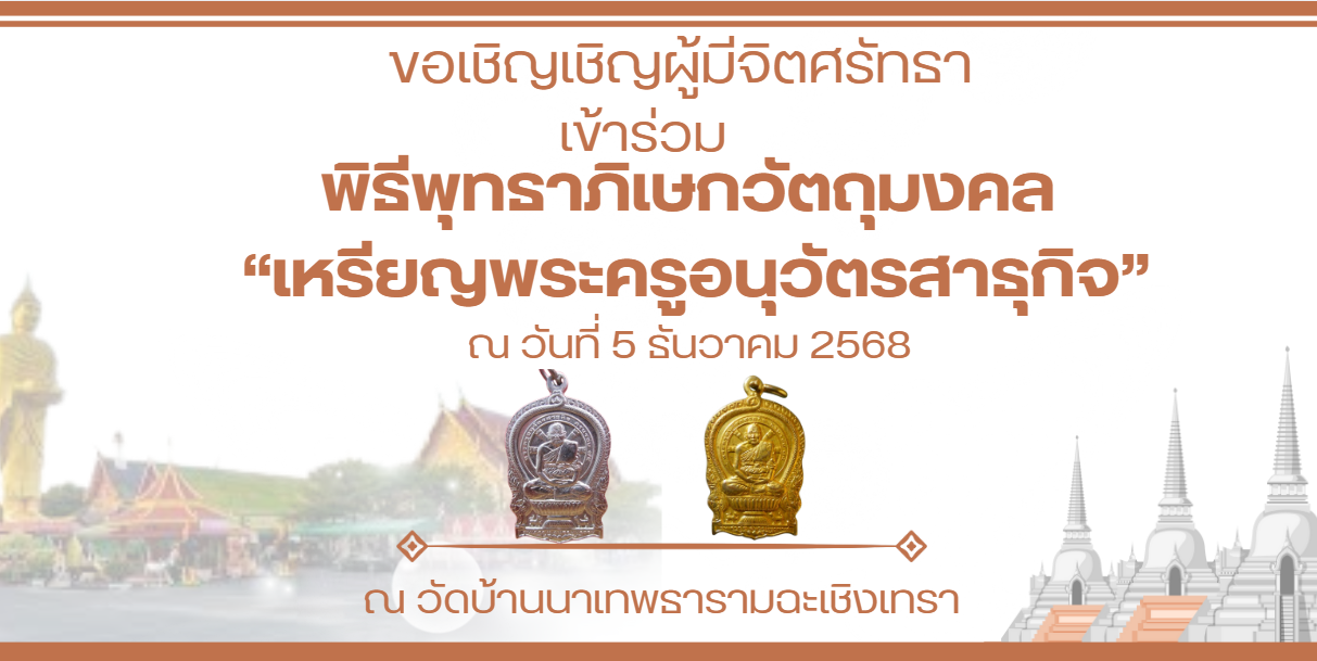 กำหนดการจัดพิธีวันที่ ๕ ธันวาคม พ.ศ. ๒๕๖๘ เวลา ๙.๐๐ น.📍 ณ วัดบ้านนาเทพธาราม จังหวัดฉะเชิงเทรา